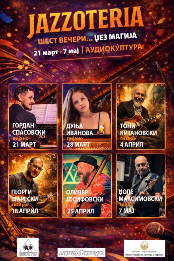 Со цел за поголема промоција и афирмација на современата македонска џез сцена, продуцентската куќа Трето Уво, организира циклус на концерти под наслов JAZZOTERIA – серија од шест ексклузивни соло настапи на врвни македонски џез музичари: Гордан Спасовски, Дуња Иванова, Тони Китановски, Георги Шарески, Оливер Јосифовски и Ѓоле Максимовски, што ќе се одржат во аудиоцентарот Аудиокултура Скопје.